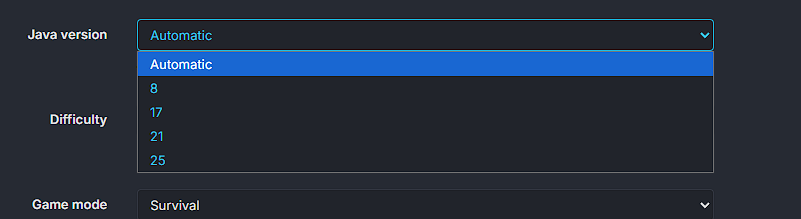 Just set the Java version to 17, save the configuration, and then start the server normally.